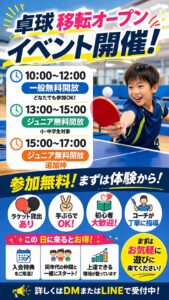 4月19日(日) 移転オープンイベント時間変更お知らせ🏓✨